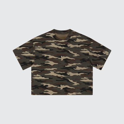 Unisex Heavyweight Boxy Cropped Camo T-Shirt (270GSM)