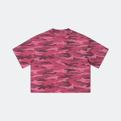 Unisex Heavyweight Boxy Cropped Rose Camo T-Shirt (270GSM)